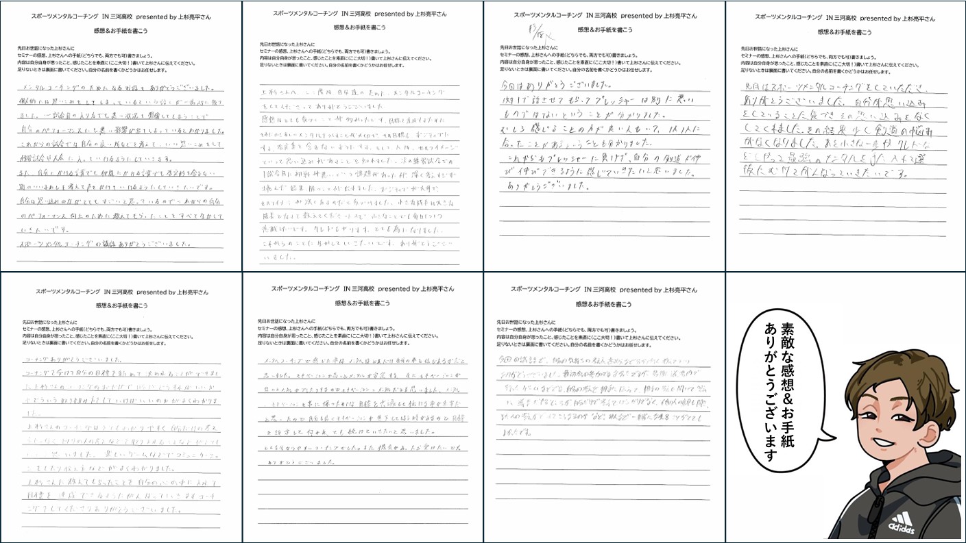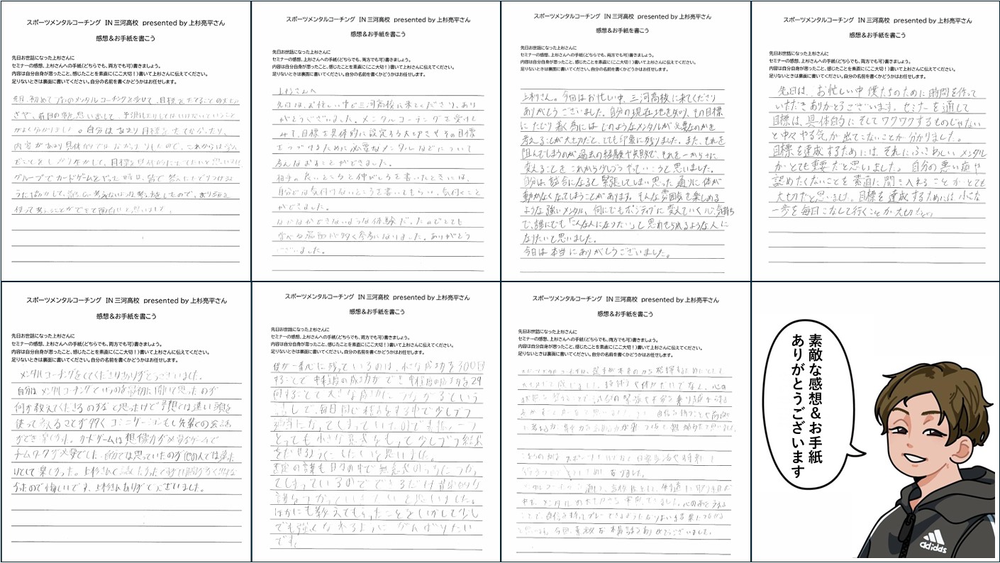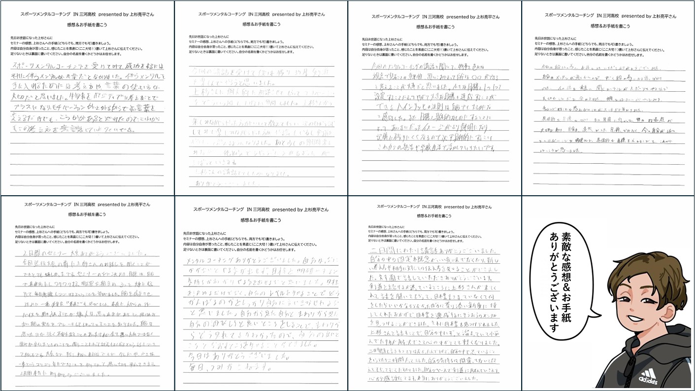 どの手紙からも、選手たちが素直に受け取り、自分の競技に活かそうとしている姿勢が伝わってきました。